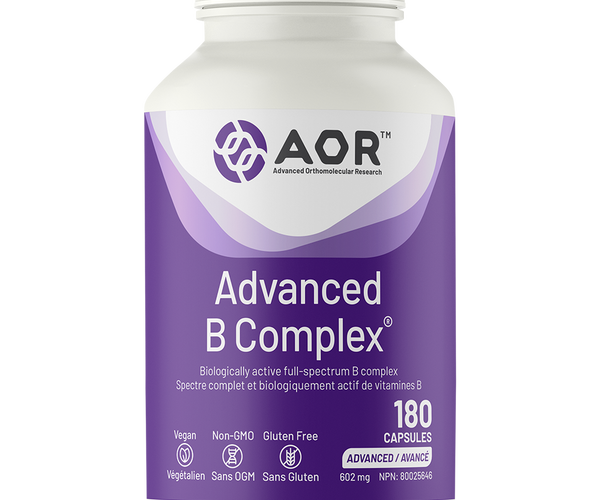 AOR Advanced B Complex was designed to provide the most advanced forms of B vitamins in the most scientifically discerning ratios available. These nutrients help metabolize carbohydrates, proteins and fats for energy and support tissue and red blood cell formation.