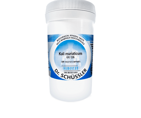 Medicinal ingredient: Kali muriaticum 6X or 12XNon-medicinal ingredients: Lactose, magnesium stearate.