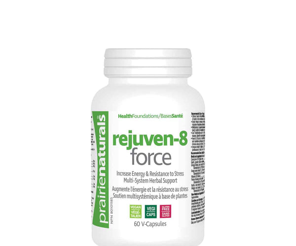 Prairie Naturals Rejuven-8 Force is a multi-system herbal support product used in Traditional Chinese Medicine to improve energy and relieve the symptoms of stress. Rejuven-8 Force is like a vacation in a bottle with adaptogen and soothing herbals to help to refresh your overall system.