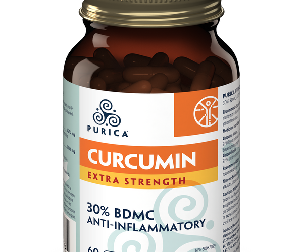 PURICA Curcumin Quickly alleviates inflammation and relieves joint pain. Enhances detoxification, promotes skin health, balances cholesterol, regulates blood sugar and helps prevent blood clots. Also boosts brain function PURICA Curcumin is Extra Strength. It works to provide Rapid Relief and Optimal Performance on the strength of 30% bisdemethoxycurcumin (BDMC), compared to the 1% BDMC found in regular curcumin extract. That’s a 30-to-1 ratio designed to make a difference for you! Why wait days for relief when you can have it in just a few short hours? Life is precious. So is your time. Why waste any of it? With PURICA Curcumin Extra Strength 30% BDMC Anti-Inflammatory, you’re getting remarkably fast-acting relief from inflammation and joint pain. At a potency of 30 times the regular curcumin extract, you can make sure that time and performance is on your side. Why the potency matters? Powered by 30% BDMC, PURICA Curcumin quickly alleviates inflammation and relieves joint pain. And fast! The Rapid Relief leads the way to Optimal Performance, so that you can get back to what you love doing. Day in. Day out. It works better and longer for you. Better runs and walks. Longer runs and walks. Better workouts. Longer workouts. Better fun. Longer fun. Additional benefits Yet that’s not all. PURICA Curcumin 30% BDMC also: Enhances detoxification Promotes skin health Balances cholesterol Regulates blood sugar Helps prevent blood clots. Boosts brain function. Medicinal ingredients (per capsule) Curcuma longa 97.0 % curcuminoids (curcumin, demethoxycurcumin, bisdemethoxycurcumin) 267.2 mg Curcuminoids 97 % (bisdemethoxycurcumin) 110.0 mg Non-medicinal ingredients: Hypromellose, magnesium stearate, microcrystalline cellulose, silicon dioxide, water Recommended use: Provides antioxidants for the maintenance of good health. Used in herbal medicine to help relieve joint inflammation Recommended dose: Adults: 1 Capsule daily. Cautions and warnings: Consult a health care practitioner prior to use if you are pregnant or breastfeeding, if taking antiplatelet medication or blood thinners; if suffering from bile duct obstruction such as gallstones; if you have stomach ulcers or excess stomach acid; or if symptoms persist or worsen. Do not use if seal on cap is broken or missing.