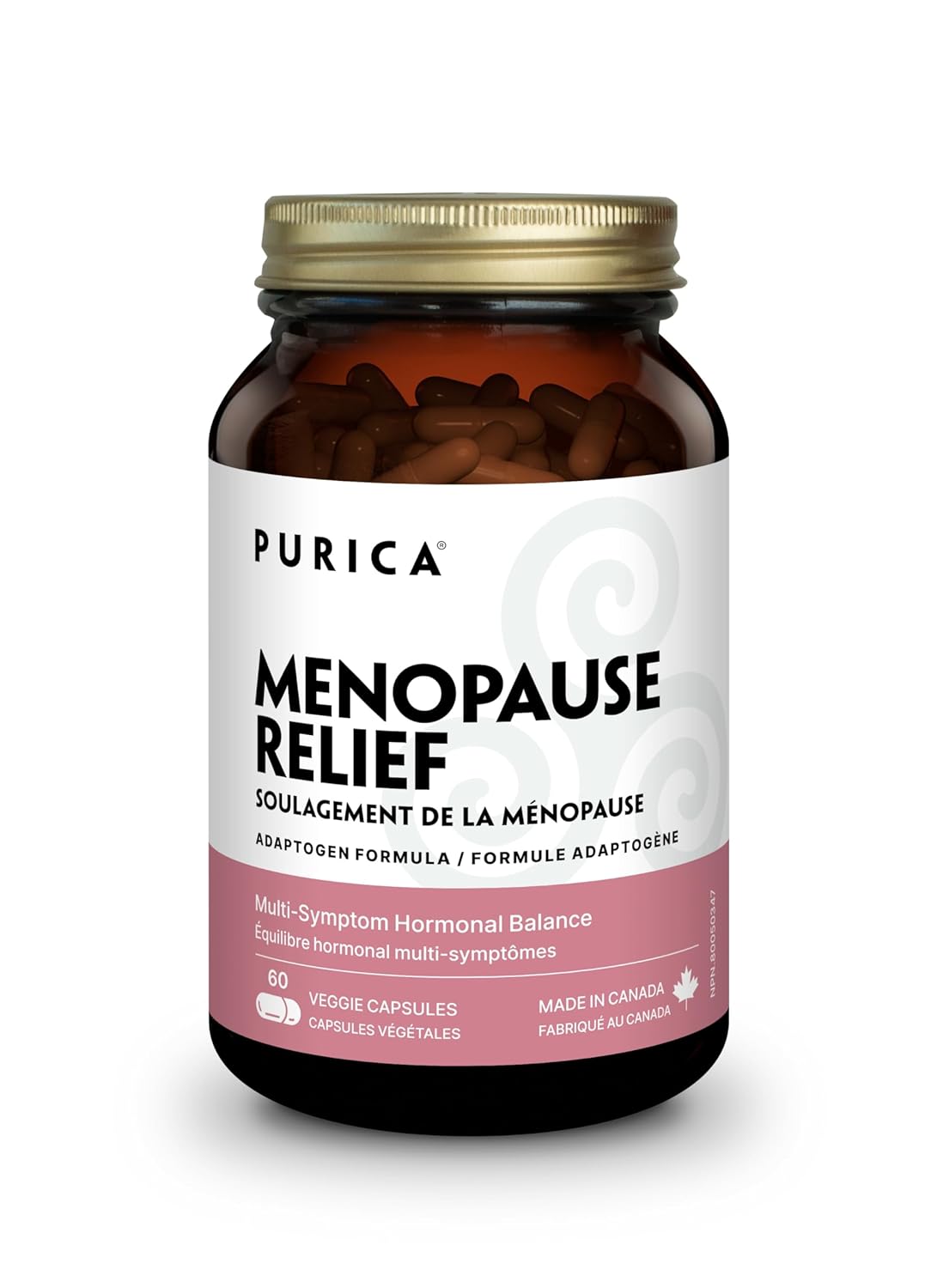 PURICA Menopause Relief Hormone Rebalance, 60 Veggie Capsules, Herbal Blend for Women's Comfort, Hot Flashes & Night Sweats, Proudly Made in Canada