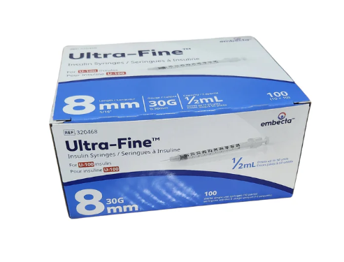 Embecta Ultra-Fine II Insulin Syringe 1/2ml 8mm 30G 100 Count