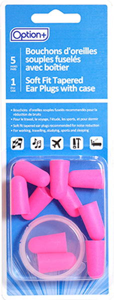 Option+ Soft Fit Tapered Ear Plugs with Case 5 Pairs
