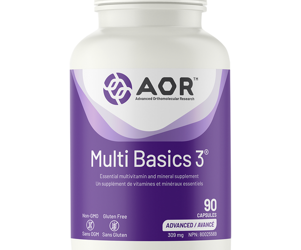 AOR’s Multi Basics 3® is formulated to deliver the most fundamental nutrients in active forms in the fewest capsules possible. Multi Basics 3® includes all recognized essential nutrients and delivers them in superior forms, such as the inclusion of the complete E complex and the menatetrenone form of vitamin K.