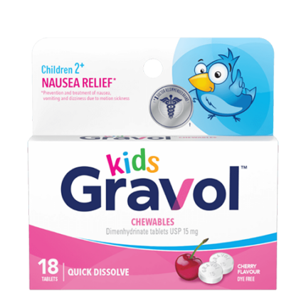 Gravol Kids Quick Dissolve Chewables Cherry Flavour 18 Tablets